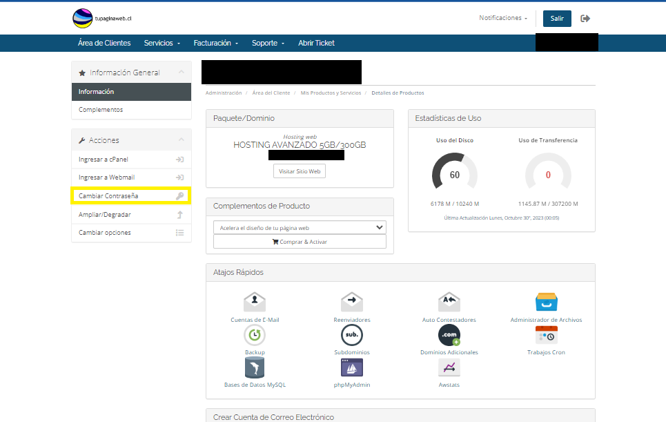 2. Luego ingresa en la opción "Cambiar Contraseña"