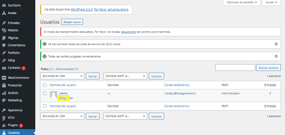 3. Busca tu usuario, al colocar el ratón (mouse) sobre el nombre del usuario verás el botón "Editar".
