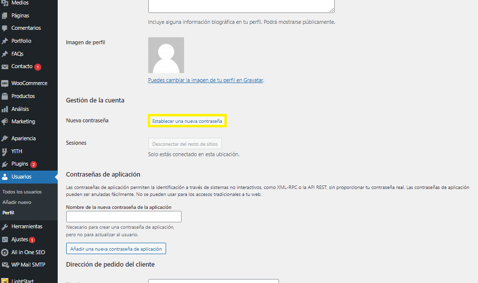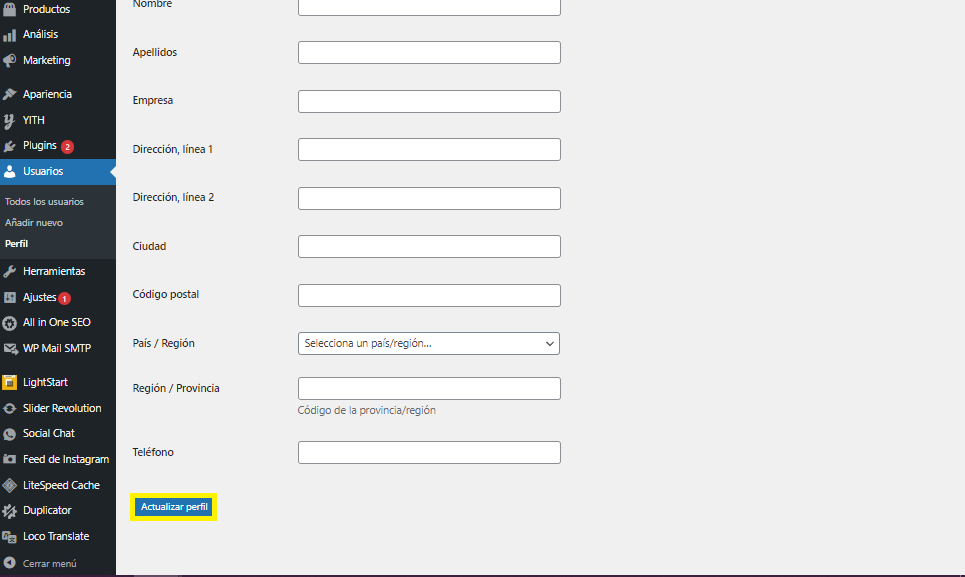 5. Baja hasta el final de esta página y para terminar haz clic en el botón "Actualizar perfil". De esta forma se cambia tu contraseña.