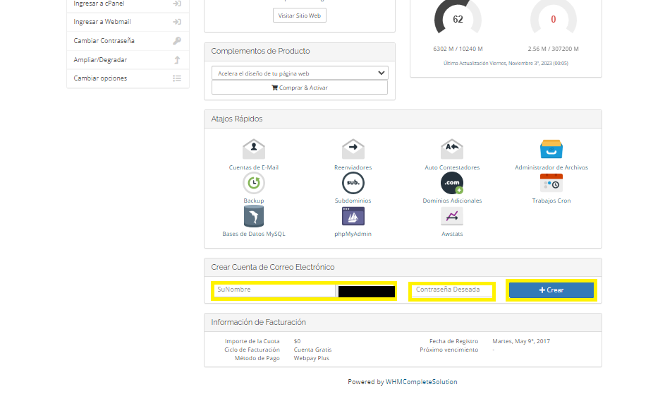 Crear cuenta de e-mail